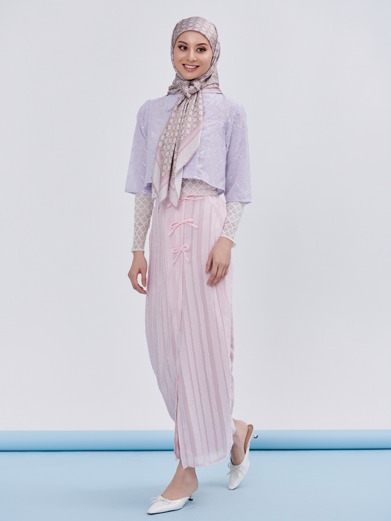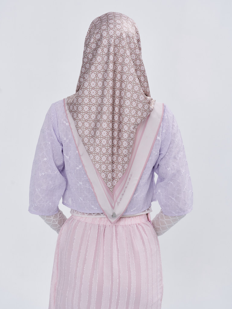 This sophisticated scarf features a dusty pink colour palette, creating a timeless fusion that exudes elegance. The intricate mosaic-like pattern adds depth and visual interest, evoking a sense of artistry and craftsmanship