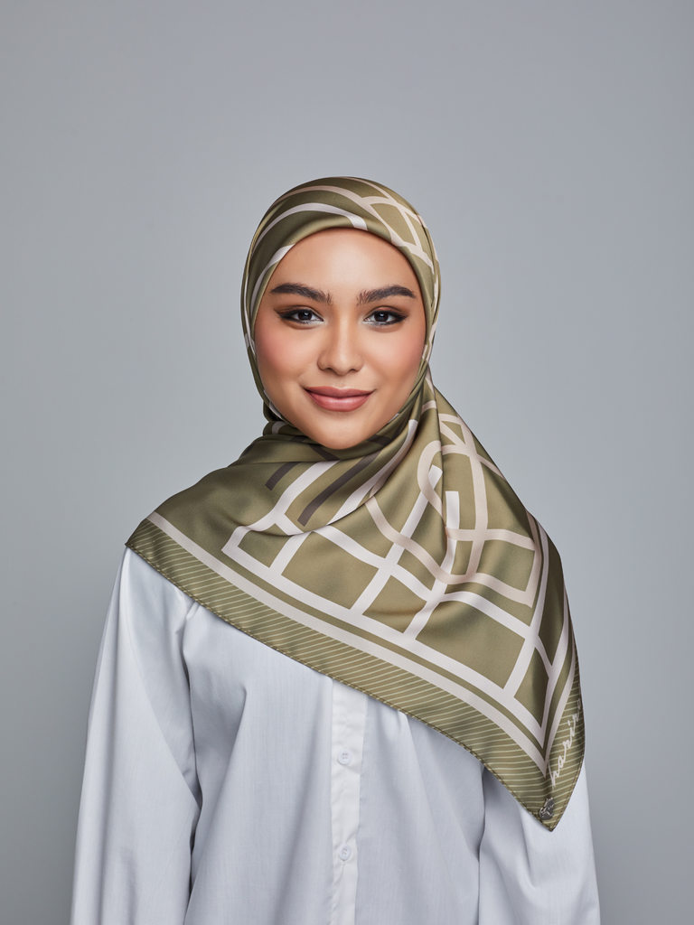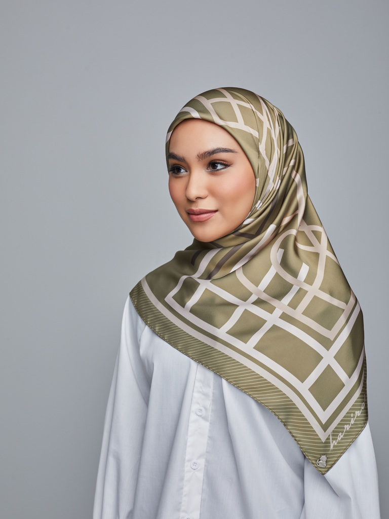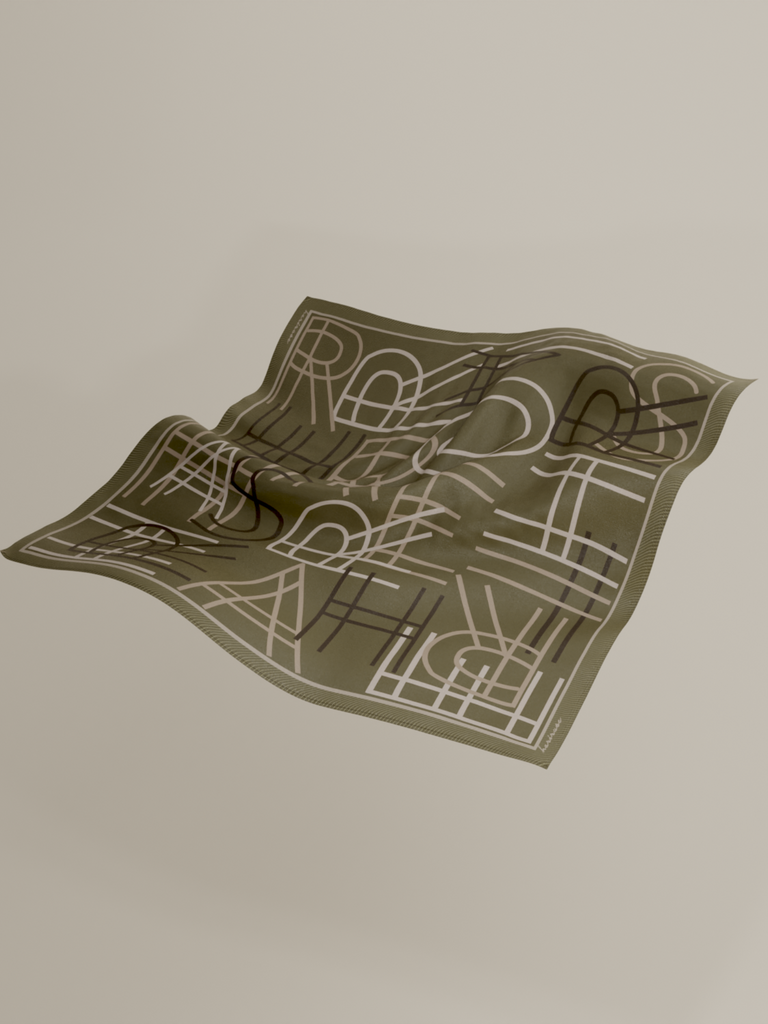 A rich green with olive undertone satin silk scarf, its texture allows it to gracefully drape, offering a delicate touch against your skin making this scarf a versatile and chic accessory for any occasion.