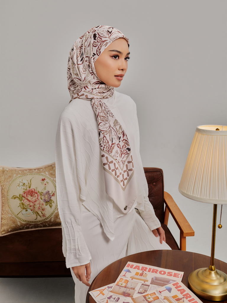 You are in a "Kampung" when you are surrounded by trees rather than skyscrapers! As a result, our Jameela Scarf was inspired by "Pokok Kampung". #TeamrayainKL should get our Jameela Scarf to match with their Raya outfit for nostalgic kampung vibes. Jameela Scarf in cocoa brown looks gorgeous with green, blue, gold, copper. Jameela scarf in Grey Brown is perfect paired with nudes and grey.