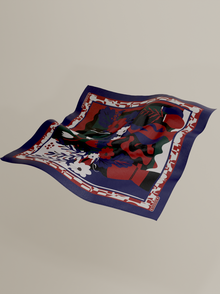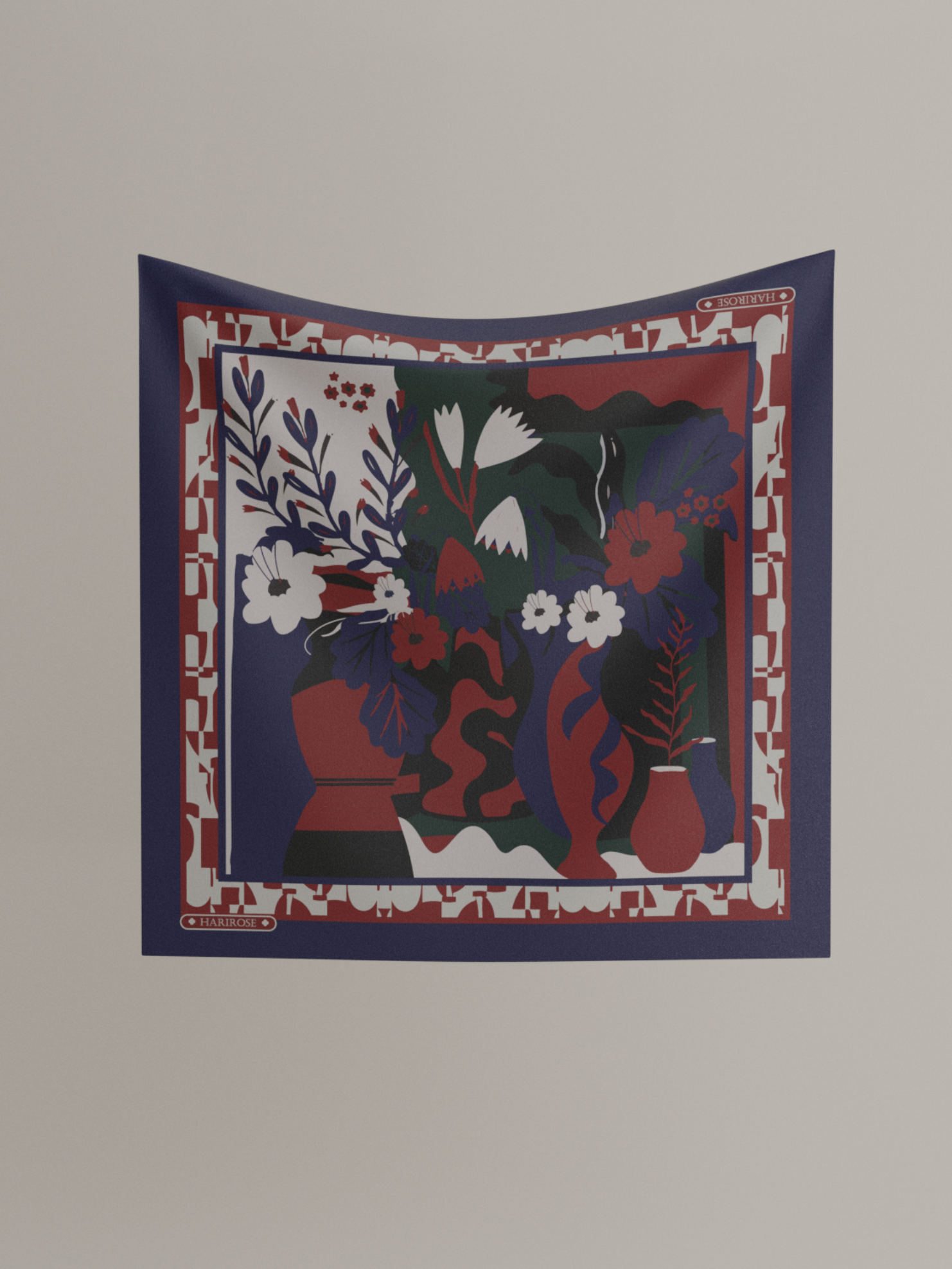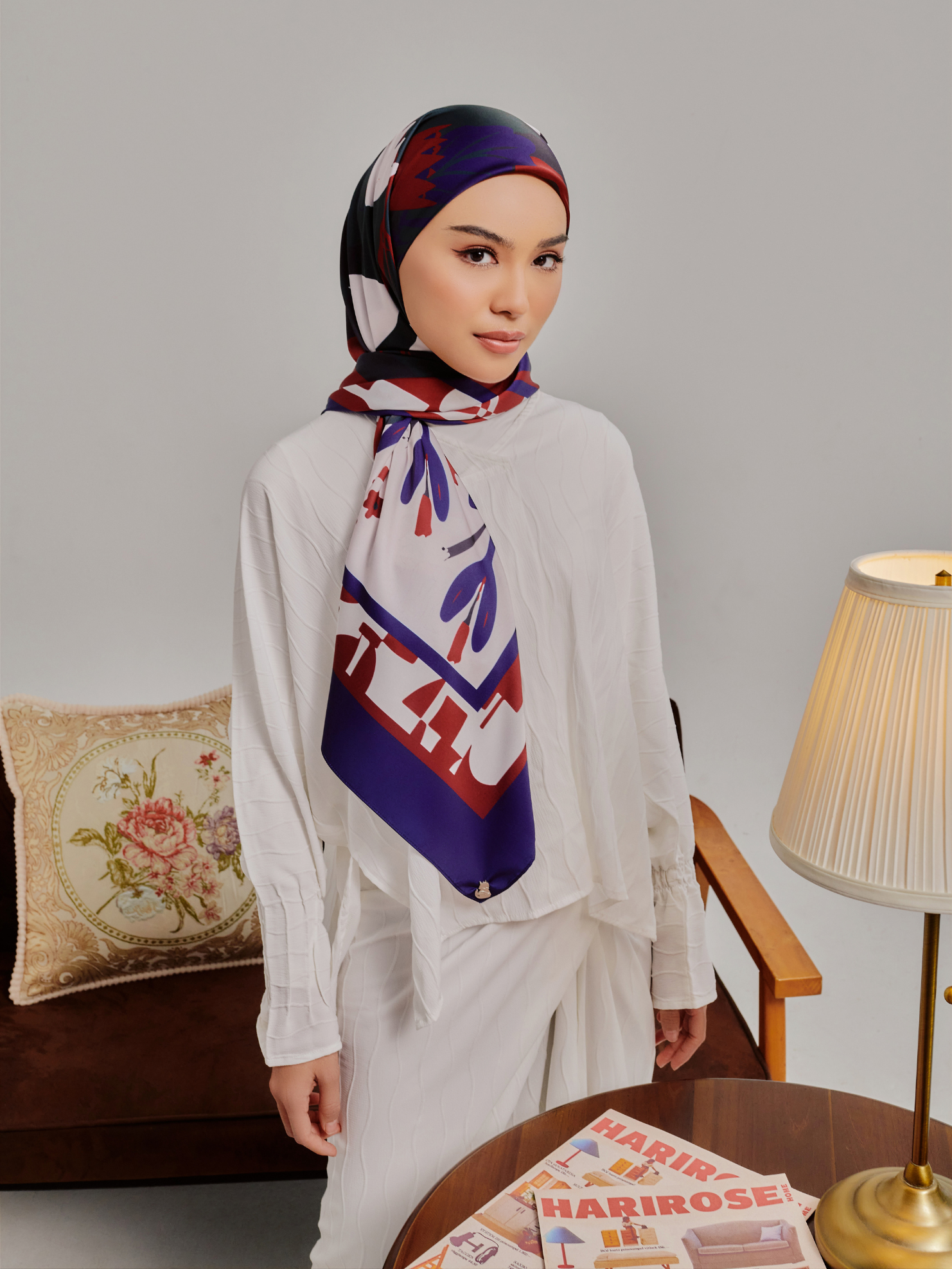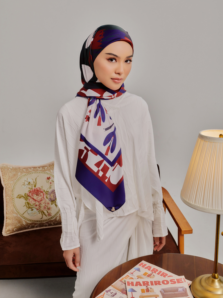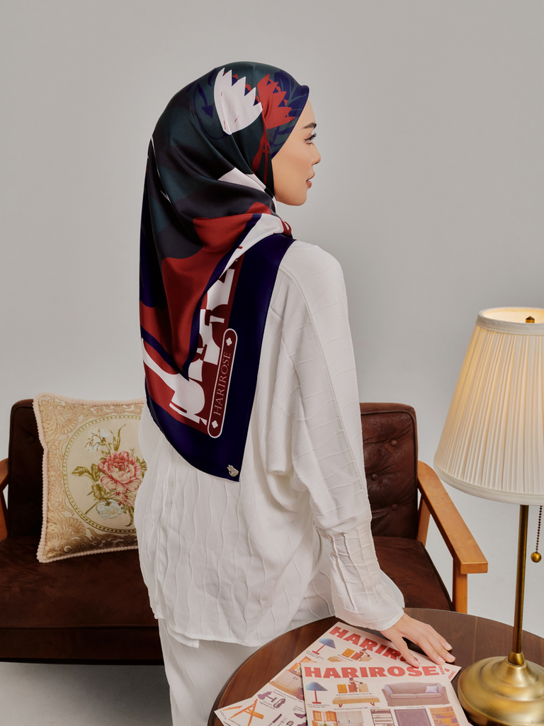 Our limited edition Siti scarf is inspired by grandma's vases. The pattern is developed in the shape of a flower pot that is a staple in our grandmother's house. Grandma's vases never go out of style; they are timeless and evergreen. This abstract reincarnation of grandma’s vases has a modern twist. Since the design is already intricate, we suggest pairing it with a plain kurung or kebaya. Pair the Siti Scarf in Crimson Navy with dark blue, maroon or even emerald green. Material : Satin Silk Color : Navy Crimson Dimension : 46” x 46” |