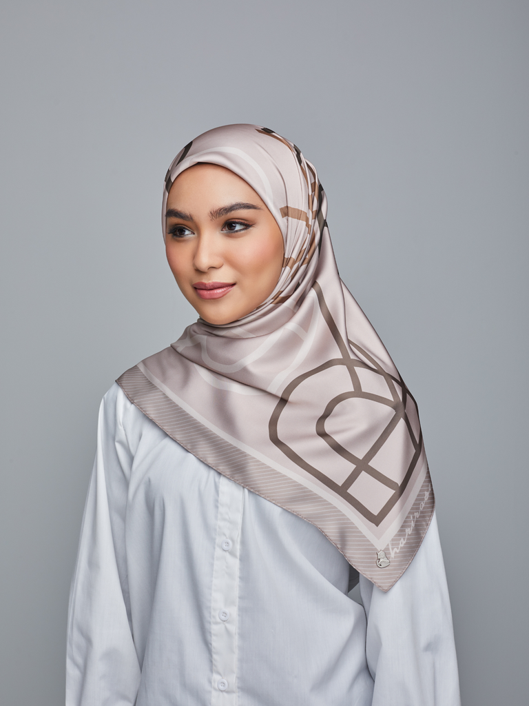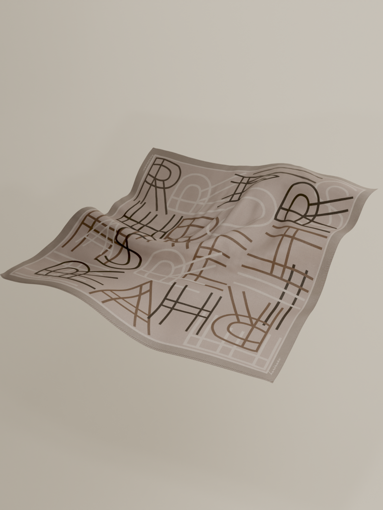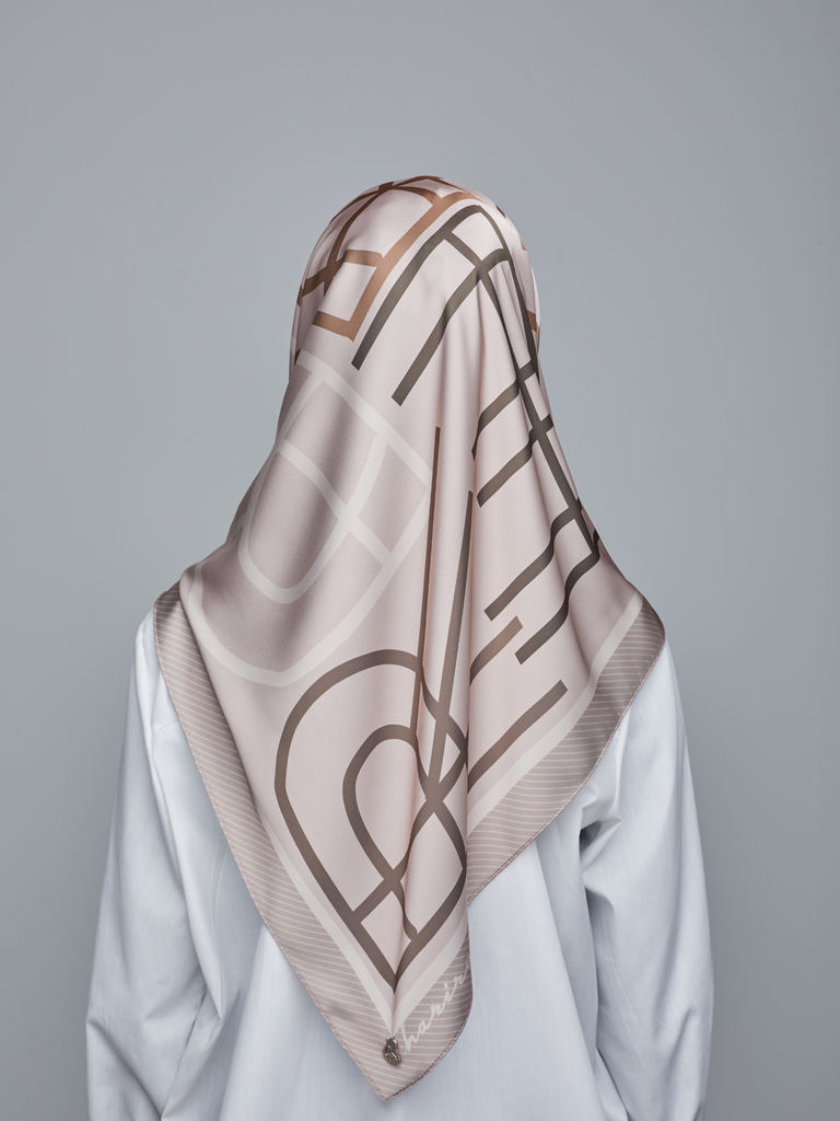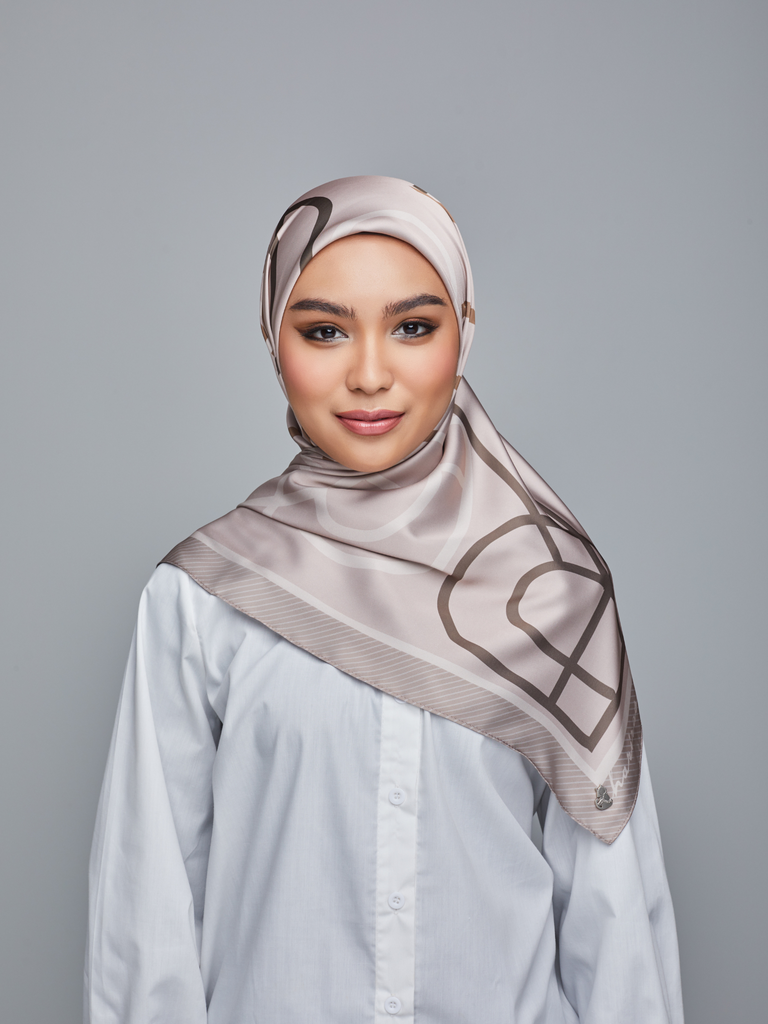 A soft hue of taupe with a subtle pink undertone satin silk scarf, its texture allows it to gracefully drape, offering a delicate touch against your skin making this scarf a versatile and chic accessory for any occasion.