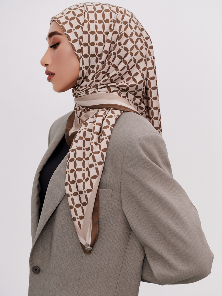 Serasi Collection in POTRET MOMEN (MOSS) drapes elegantly and most importantly, it is very easy to shape. The combination of floral and geometrical elements will not only