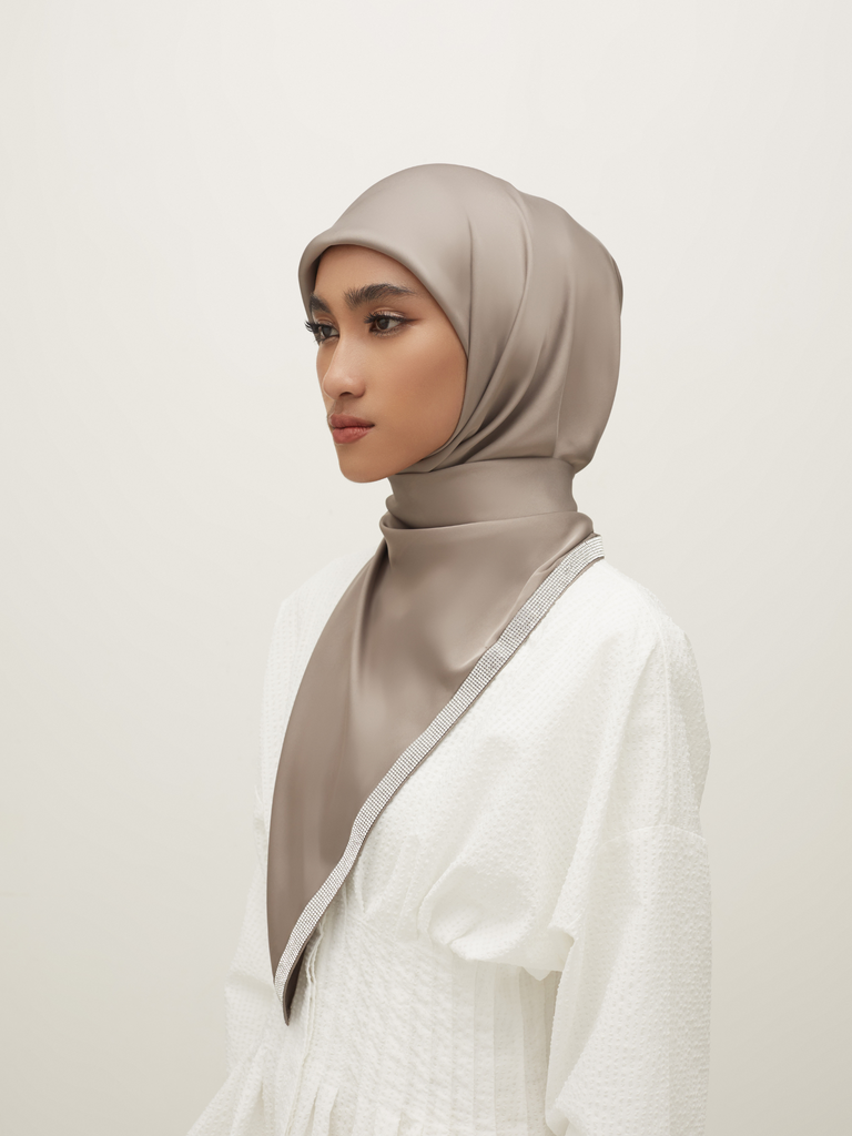 Step into the world of timeless elegance with our new Lux range, meticulously crafted with a shimmering diamond strip showcasing the letter 'L', a symbol of luxury and refinement that effortlessly elevates your every look. Wrap yourself in understated elegance with our stone grey scarf, a versatile and timeless hue reminiscent of smooth, polished stone, effortlessly adding sophistication and refinement to any outfit.