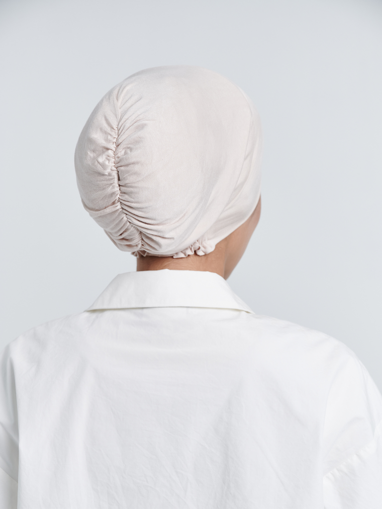 Lightweight and cooling to the touch, our inner caps also feature a ruched back for that comfortable grip, so no scarves will dare slip off your head throughout the day.