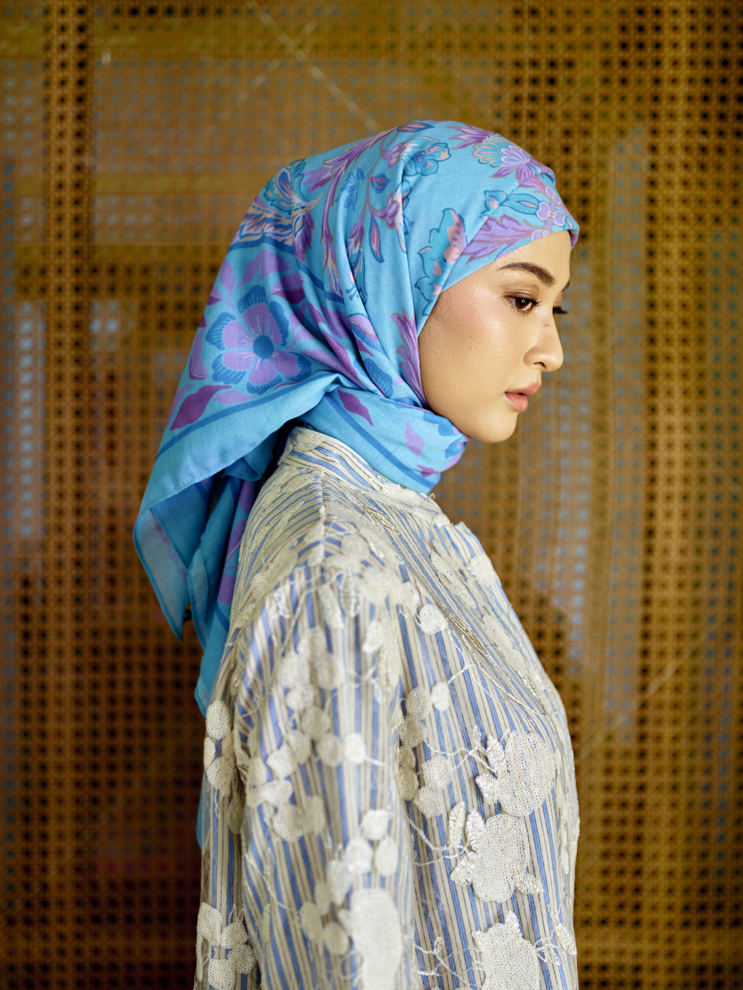 Soft, breathable, and made for effortless Raya styling, this Arabian Voile square scarf is designed to move with you from morning visits to evening gatherings. Framed with abstract floral details along the border and finished with intricate bold blooms throughout, it brings together softness and statement in one easy-to-wear piece, available in four pastel colour ways.